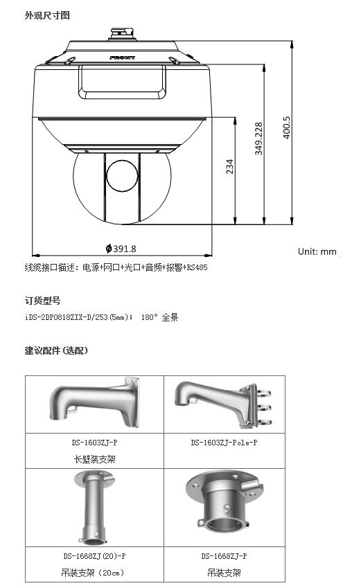 星光級(jí)180°全景一體式網(wǎng)絡(luò)高清智能球機(jī)( iDS-2DP0818ZIX-D/253(5mm))