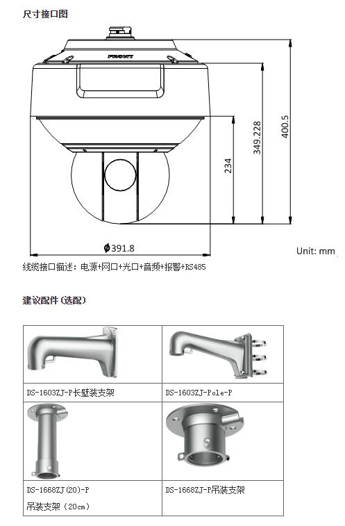 iDS-2DP0818ZIX-D/253(5mm)星光級全景網(wǎng)絡高清智能球機,采用一體化設計,單產(chǎn)品即可同時提供全景與特寫畫面,兼顧全景與細節(jié)。其中全景畫面由4個傳感器拼接而成,可實現(xiàn)180度的全景監(jiān)控;一體化機芯和高速云臺設計,在全景監(jiān)控的同時為用戶提供快速細節(jié)定位功能。另外鷹眼系列全景球機還集成了先進的視頻分析算法和多目標跟蹤算法程序,可實現(xiàn)自動或手動對全景區(qū)域內(nèi)的多個目標進行區(qū)域入侵、越界、進入?yún)^(qū)域、離開區(qū)域行為的檢測,并可輸出報警信號和聯(lián)動云臺跟蹤,從而滿足高等級要求的安保需求。